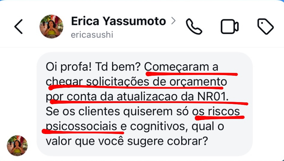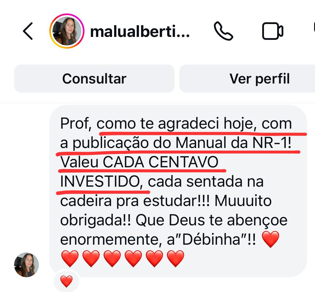 É fundamental que você aprenda essa avaliação com um profissional que realmente atua nas empresas e tem experiência de mais de uma década. Infelizmente, com a atualização da NR1, surgiram muitos oportunistas no mercado apenas surfando a onda do momento, sem histórico corporativo, sem experiência em ergonomia e riscos psicossociais, que são fatores ergonômicos.